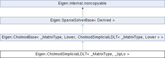 This class allows to solve for A.X = B sparse linear problems via a simplicial LDL^T Cholesky factorization using the Cholmod library. This simplicial variant is equivalent to Eigen's built-in SimplicialLDLT class. Therefore, it has little practical interest. The sparse matrix A must be selfadjoint and positive definite. The vectors or matrices X and B can be either dense or sparse.