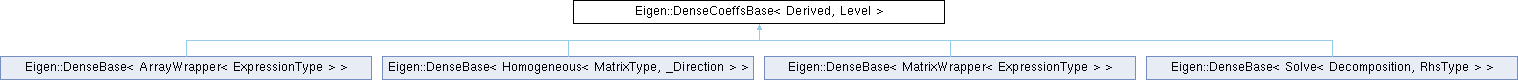 Inheritance diagram for Eigen::DenseCoeffsBase< Derived, Level >: