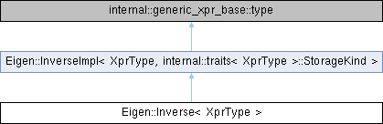 Public Types inherited from Eigen::InverseImpl< XprType, internal::traits< XprType >::StorageKind > | |