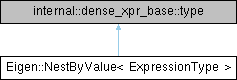 | typedef internal::dense_xpr_base<NestByValue>::type Eigen::NestByValue< ExpressionType >::Base |
