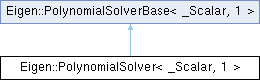 Public Member Functions inherited from Eigen::PolynomialSolverBase< _Scalar, 1 > | |