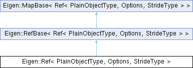 Public Types inherited from Eigen::RefBase< Ref< PlainObjectType, Options, StrideType > > | |
