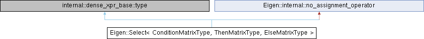 | typedef internal::dense_xpr_base<Select>::type Eigen::Select< ConditionMatrixType, ThenMatrixType, ElseMatrixType >::Base |