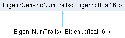 Public Types inherited from Eigen::GenericNumTraits< Eigen::bfloat16 > | |