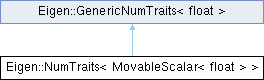 Inheritance diagram for Eigen::NumTraits< MovableScalar< float > >: