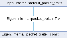 Inheritance diagram for Eigen::internal::packet_traits< T >:
