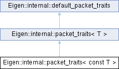 Inheritance diagram for Eigen::internal::packet_traits< const T >:
