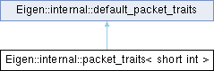 Inheritance diagram for Eigen::internal::packet_traits< short int >: