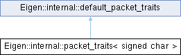 Inheritance diagram for Eigen::internal::packet_traits< signed char >: