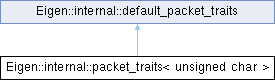 Inheritance diagram for Eigen::internal::packet_traits< unsigned char >: