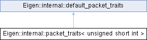 Inheritance diagram for Eigen::internal::packet_traits< unsigned short int >: