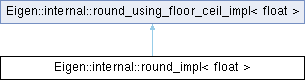 Inheritance diagram for Eigen::internal::round_impl< float >: