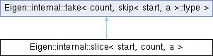Inheritance diagram for Eigen::internal::slice< start, count, a >: