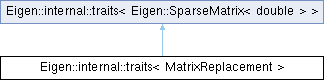 Inheritance diagram for Eigen::internal::traits< MatrixReplacement >: