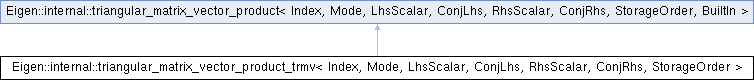 Inheritance diagram for Eigen::internal::triangular_matrix_vector_product_trmv< Index, Mode, LhsScalar, ConjLhs, RhsScalar, ConjRhs, StorageOrder >: