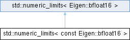 Inheritance diagram for std::numeric_limits< const Eigen::bfloat16 >: