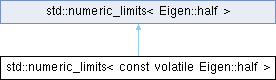 Static Public Member Functions inherited from std::numeric_limits< Eigen::half > | |